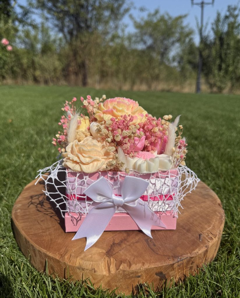 Купи СегаБукет От Соеви Свещи В Подаръчна Кутия – Розово, Жълто, Бяло