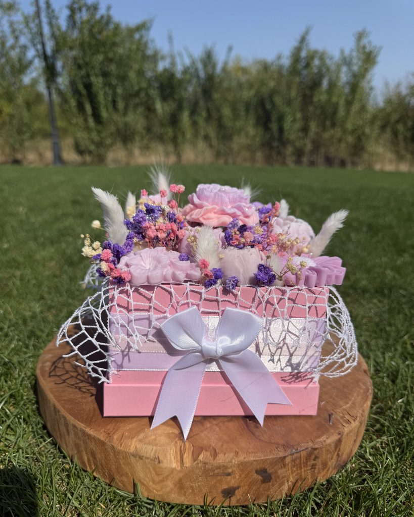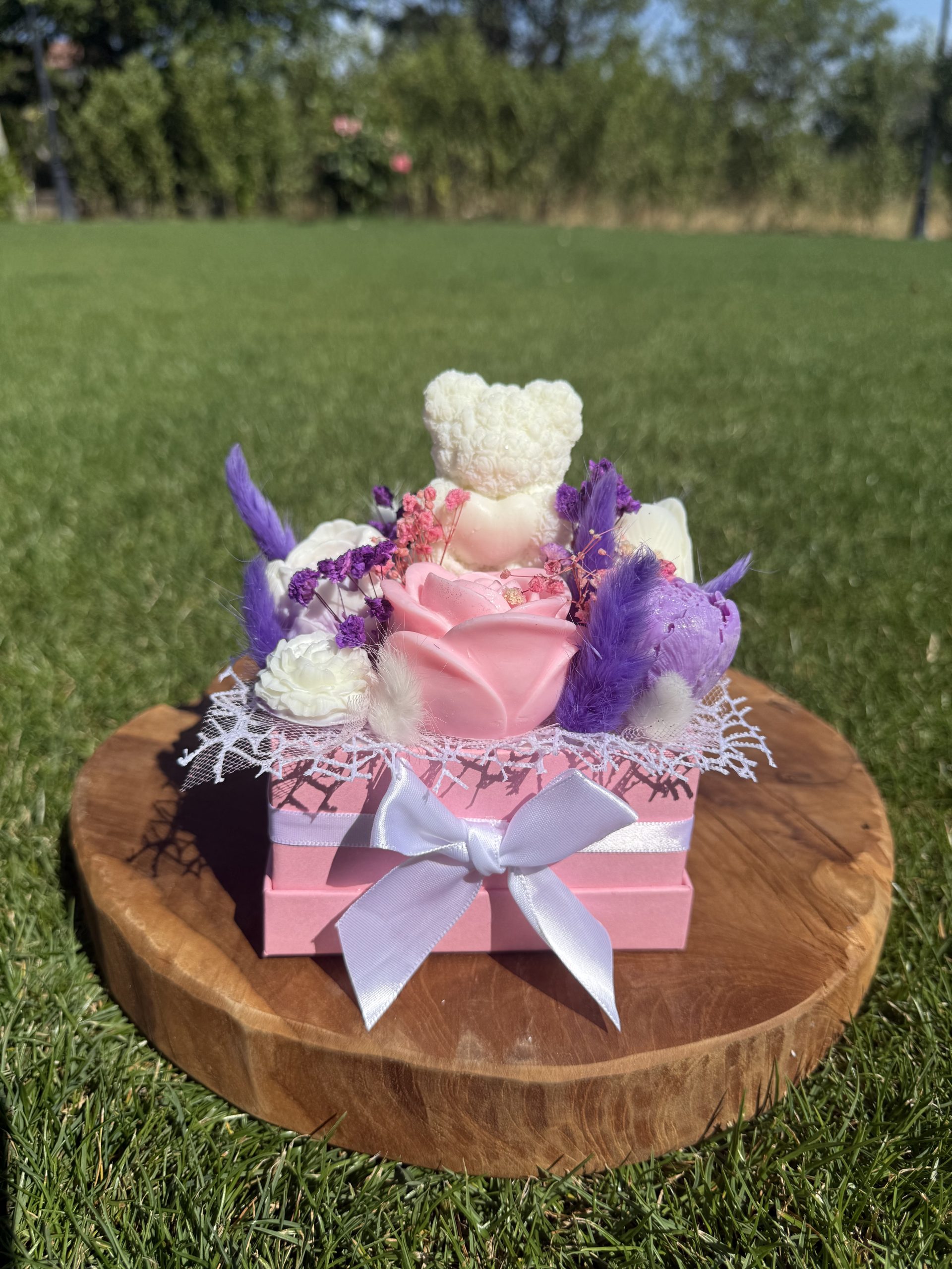 Купи СегаБукет От Соеви Свещи В Подаръчна Кутия – Бяло, Розово, Лилаво
