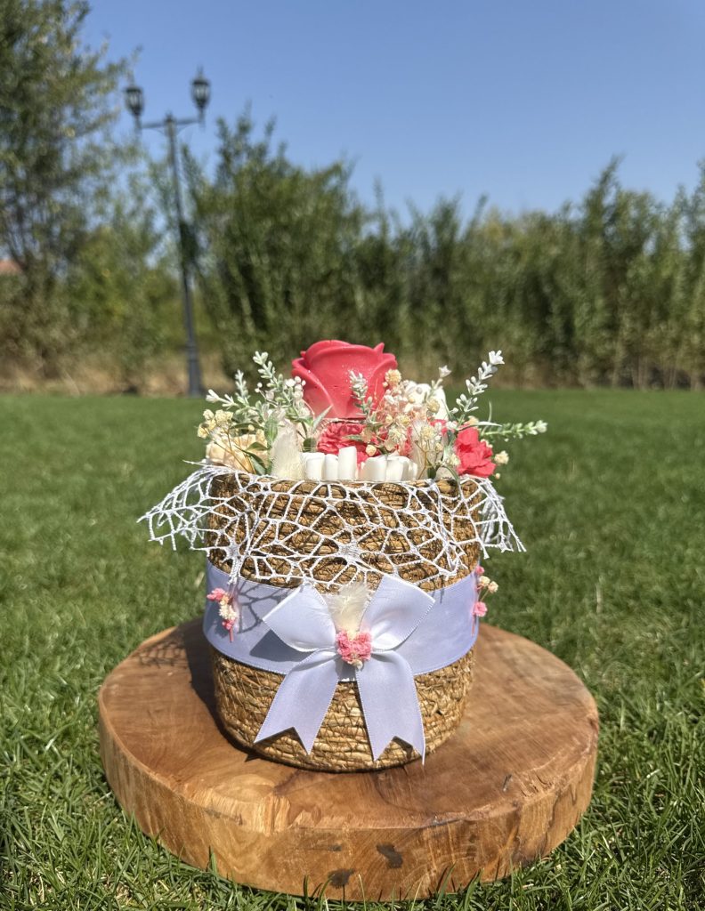 Купи СегаБукет От Соеви Свещи В „Плетена Кашпа“- Бяло, Червено, Кремаво